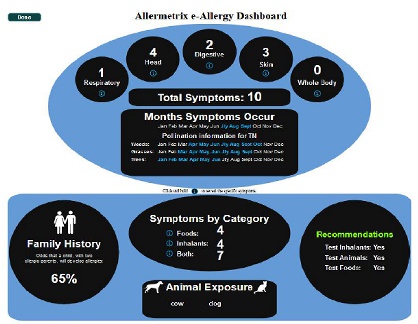 After entry the patient will see the dashboard below which will help educate them as to their potential allergy problem. This dashboard is also automatically posted to the client portal.